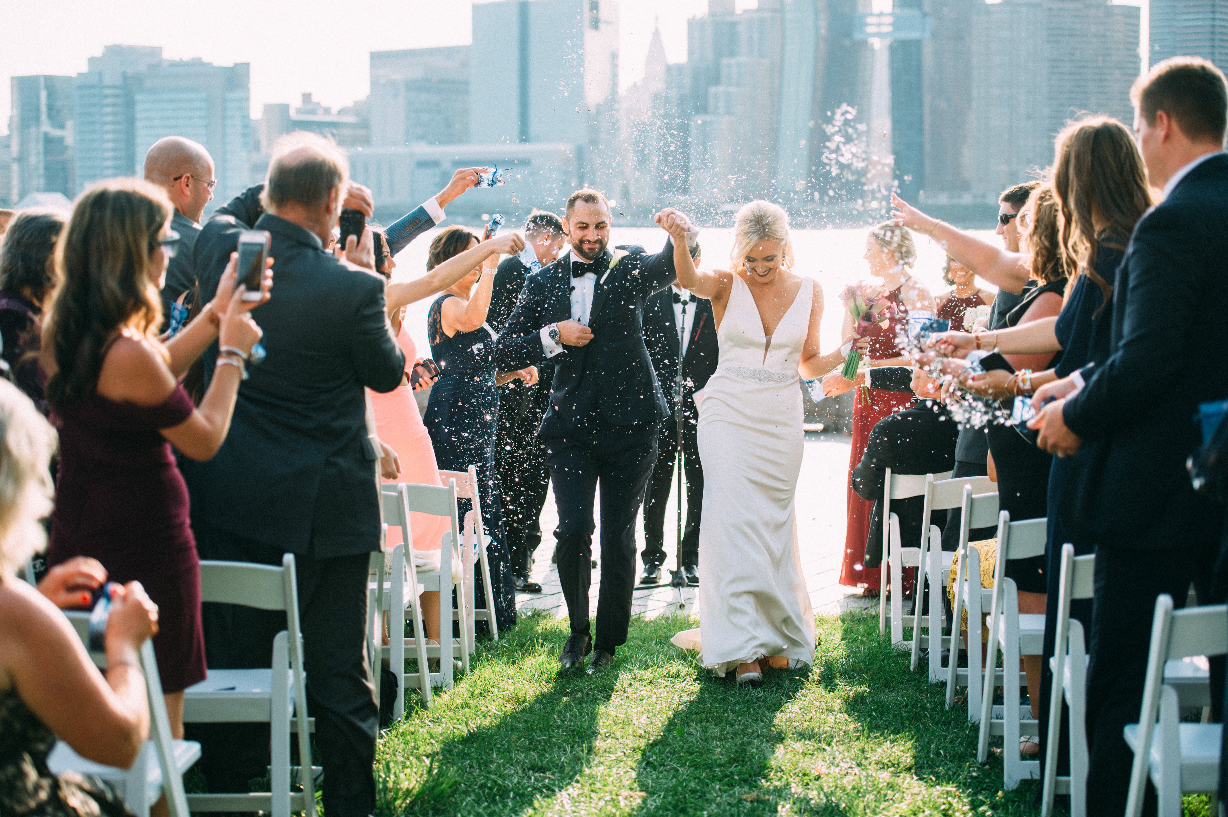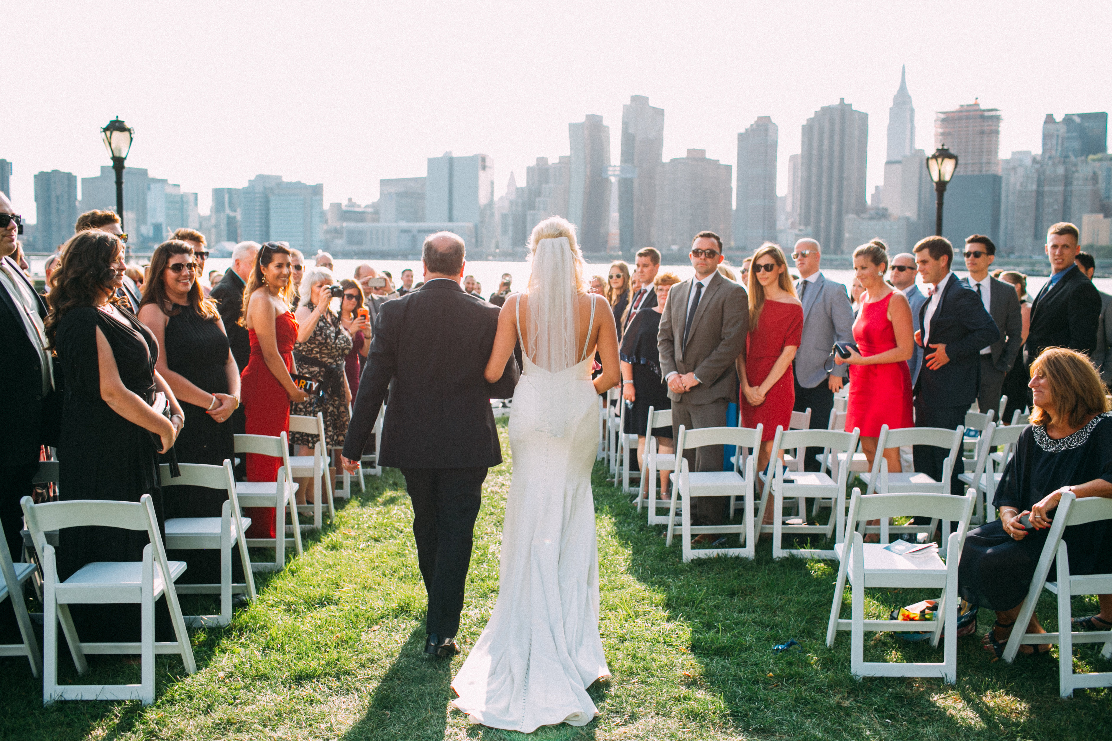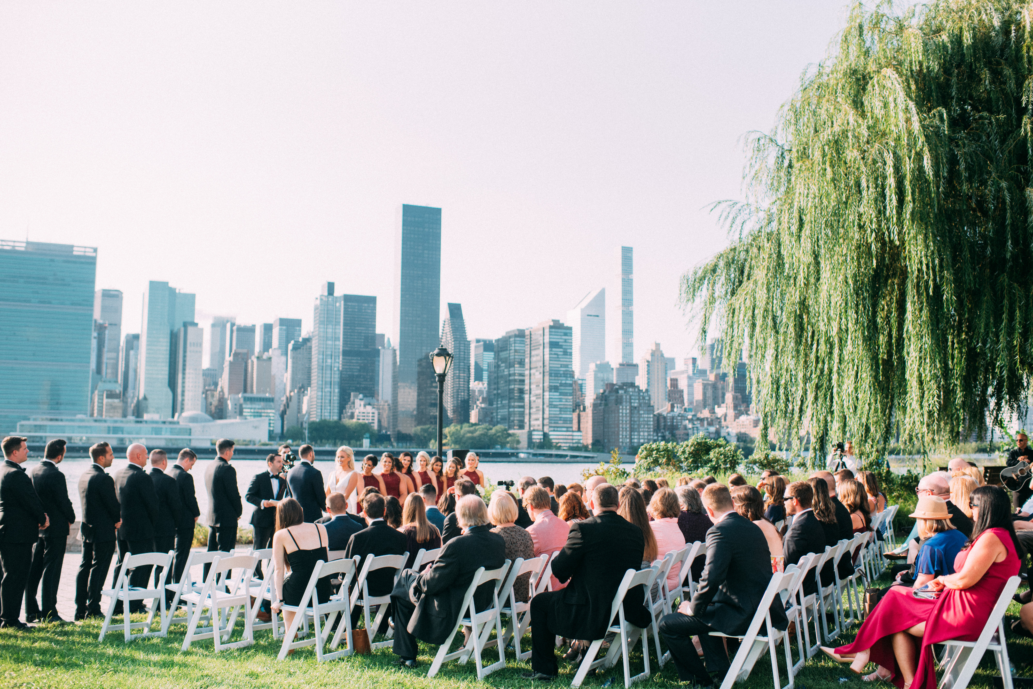 A summer wedding on the water in Long Island City with vibrant flowers and pops of color, this bride and grooms’ love for traveling and adventure really shined in their overall concept. We worked with this couple on their floral decor and complete event design utilizing vintage luggage, artifacts and romantic greens to bring their wedding to life.